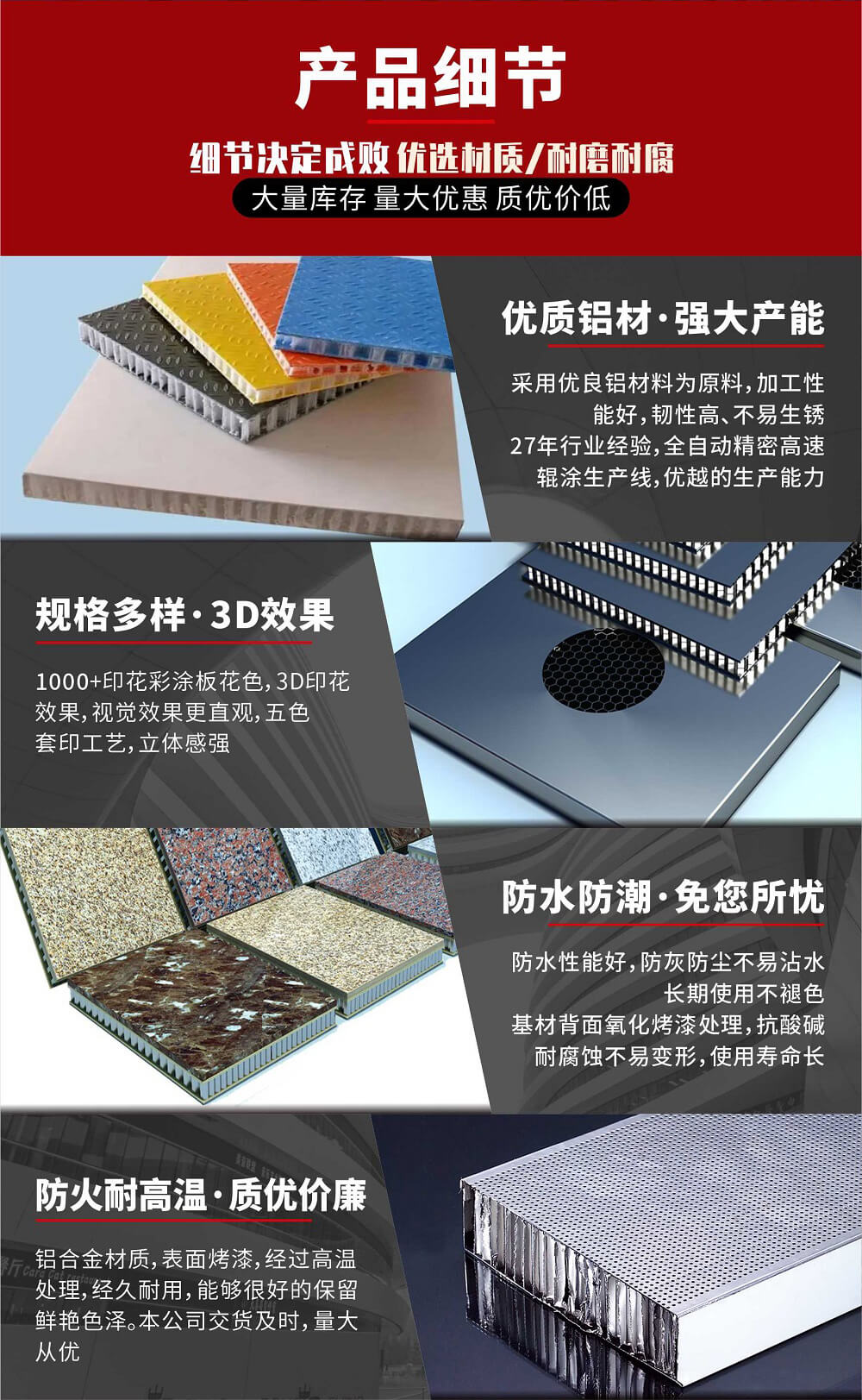 | 材質(zhì) | 高等級(jí)鋁鎂錳合金 | 芯材 | 高等級(jí)防腐鋁質(zhì)瓦楞芯或蜂窩芯 |