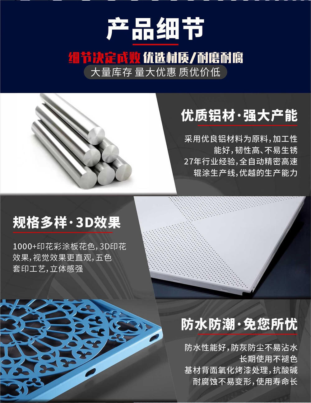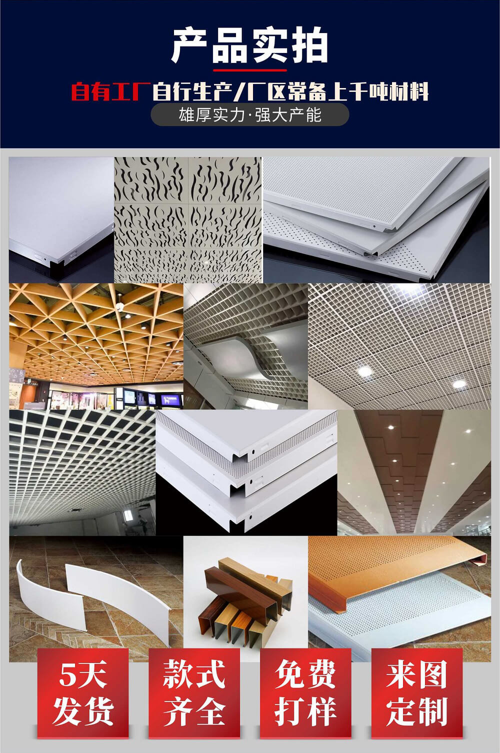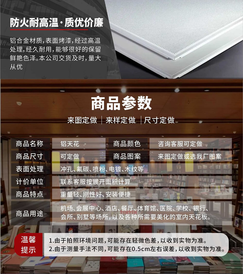| 產(chǎn)品種類 | 室內(nèi)鋁天花 | 材質(zhì) | 高優(yōu)質(zhì)鋁合金板材 | 面層 | 顏色、花紋可定制 |