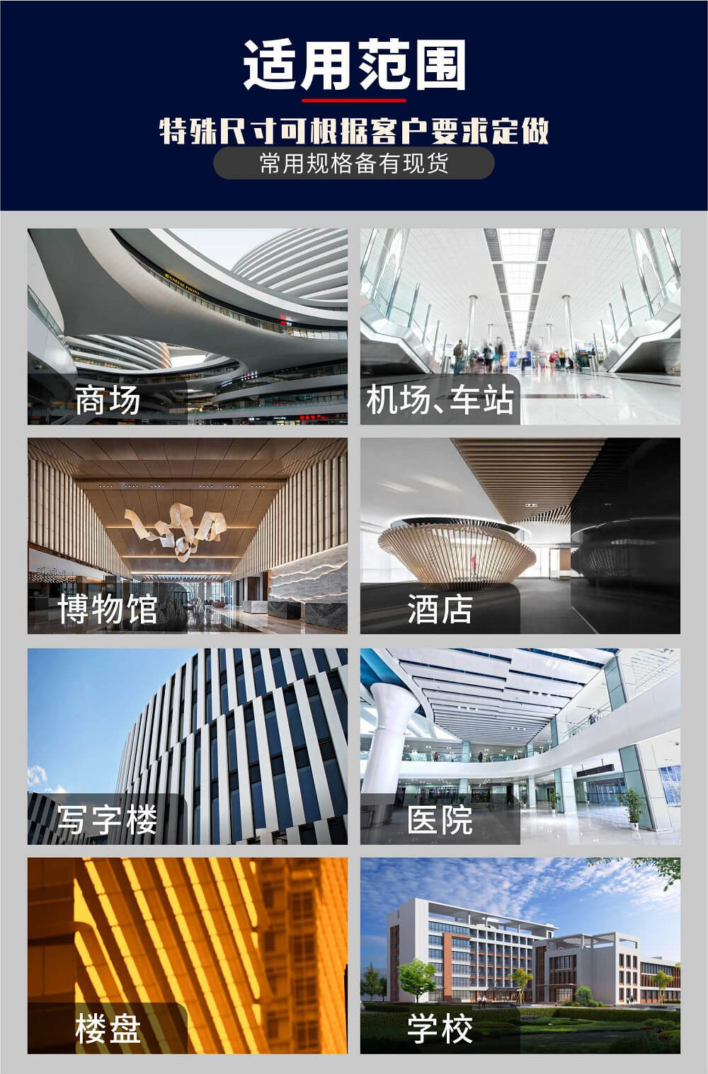 | 適用范圍 | 醫(yī)院、家用室內(nèi)吊頂、辦公室、廠房、地鐵、車站、機(jī)場(chǎng)、展館等 | ||